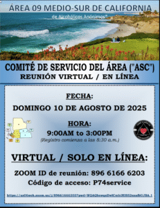 August 10th Area Service Committee (Online Only) 9am-3pm