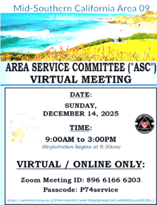 December 14: Area Service Committee-2 (Online Only) 8:30am Registration, 9am-3pm Meeting