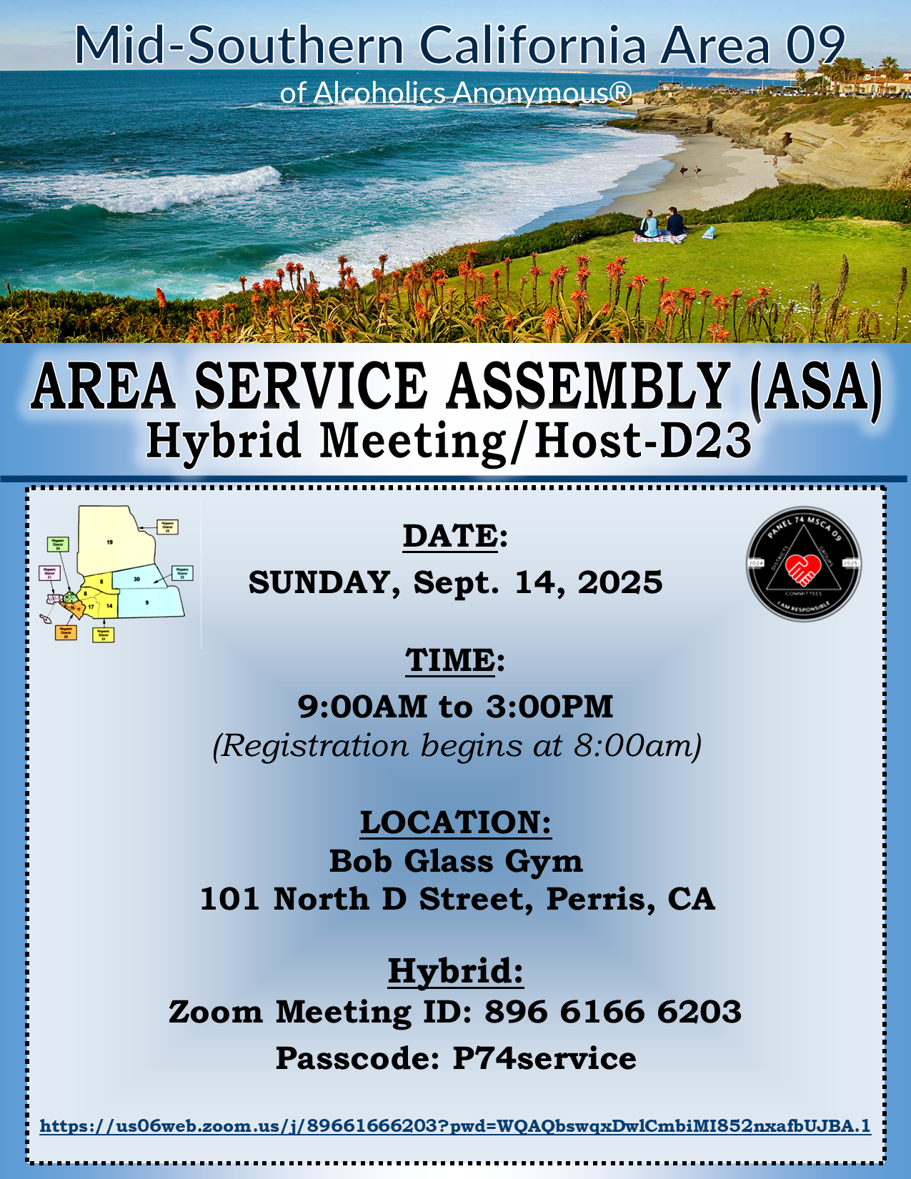 FeaturedZOOM Service Study ZOOM Virtual only, Meeting ID: 873 6607 8505 Passcode: Area09p74WHAT: 2024-2026 (Revised and Updated) Service Manual Study PRESENTERS: Jimmy W., Panel 74 Delegate of Area 64 (Tennessee) and Panel 75 Chair of Report and Charter Committee; Kade W., Panel 74 Delegate of Area 18 (Idaho) Delegate and Panel 75 Archives Chair; and Special Guests! WHEN: 3rd Third Thursday of each month (July to December 2025). WHERE: “Virtual Only”...
